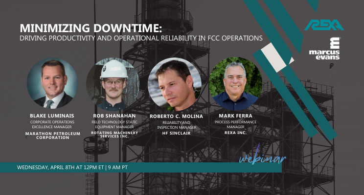 REXA’s very own Process Performance Manager, Mark Ferra, will be moderating discussion on minimizing downtime driving productivity and operational reliability in FCC operations hosted by Marcus Evants Online Events!